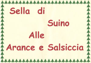 Alla sella di suino vengono praticate delle incisioni a libro e all'interno inserite fette di arancio e pasta di salsiccia (ideale al forno).